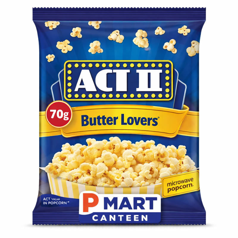 ACT II Popcorn Butter Lovers 70g ek popular microwave popcorn hai jo buttery taste aur crispy texture ke liye jana jata hai. Yeh popcorn ghar par movie night, party snacks ya quick hunger ke liye perfect option hai.