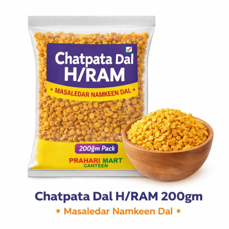 Chatpata Dal H/RAM 200gm ek crunchy aur spicy namkeen snack hai jo aapke tea-time ko aur bhi mazedar bana deta hai. Ismein high-quality dal ko special masalon ke saath roast/fry karke tayyar kiya gaya hai, jisse iska taste rich aur flavorful hota hai.