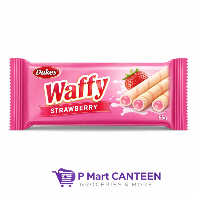 Dukes Waffy Strawberry Wafer Rolls 55g ek tasty aur crispy wafer snack hai jisme delicious strawberry cream filling hoti hai. Har bite me light crispy wafer aur sweet strawberry flavor ka perfect combination milta hai.